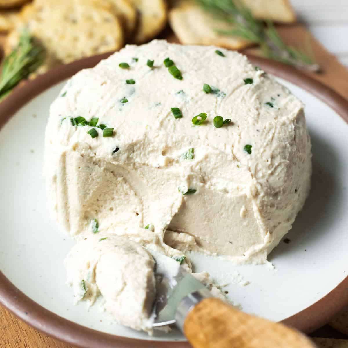 Homemade Vegan Boursin Cheese is made with cashews which are simmered in dry white wine. The result is a wonderfully creamy and rich French-style cashew cheese. With garlic, parsley, and chives, think of it like a copycat Treeline Cheese or dairy-free Boursin. Yield: makes about 1⅓ cups; serving size approx. 2 Tbsp