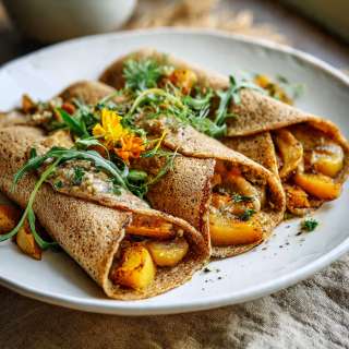 Vegan buckwheat crepes with mushrooms! Flavourful and comforting, these are a great savoury breakfast or weekend brunch, as well as a yummy breakfast for dinner option. Gluten-free, oil-free and easy.
