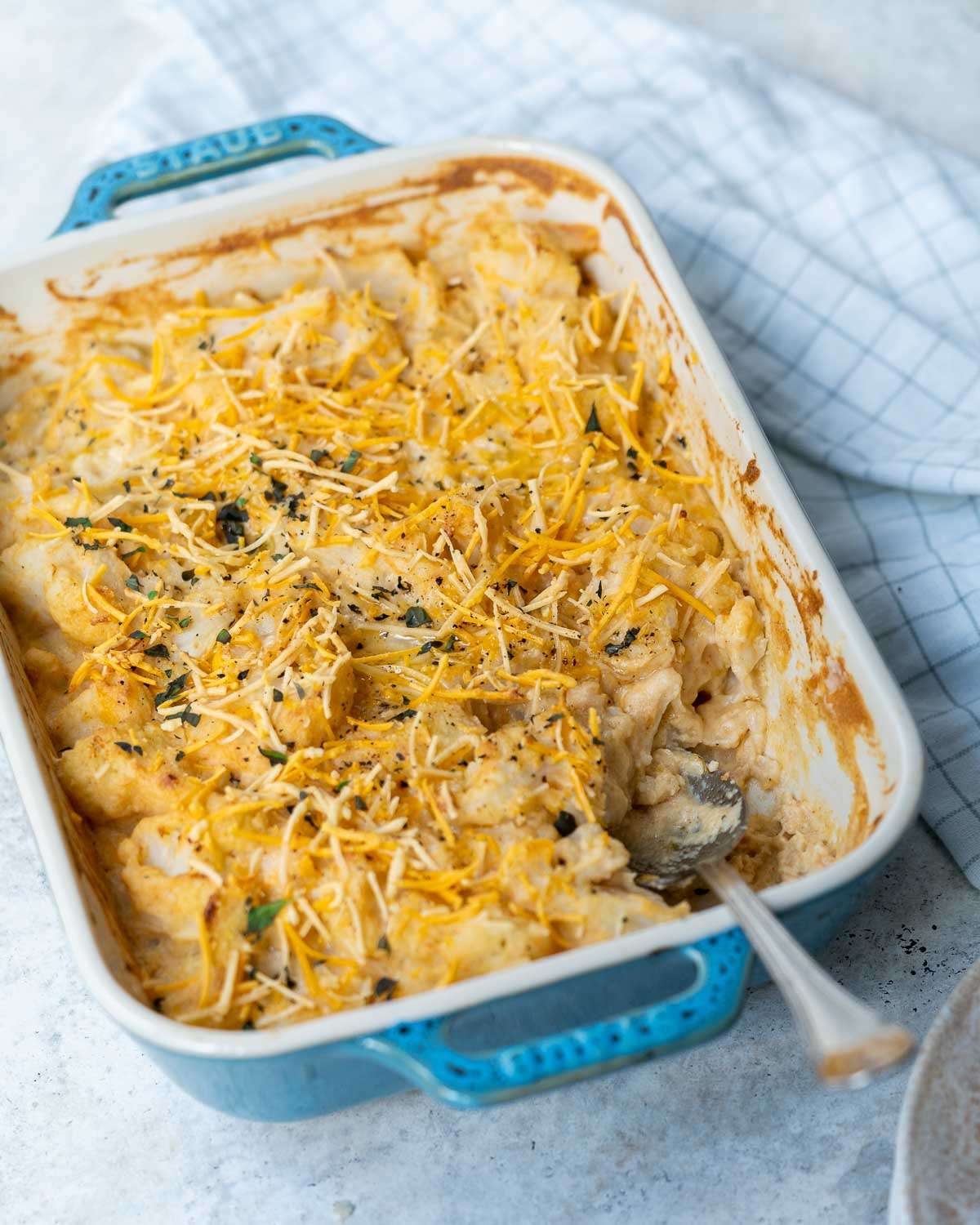 Our hearty Cauliflower Casserole is made with fresh cauliflower, nutty vegan bechamel, plant-based cheese, and flavourful ingredients to create the perfect gratin-style dish.