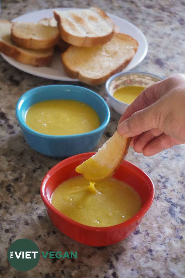 - Pour into a bowl and serve immediately with vegan buttered toast.