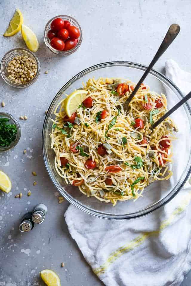 Vegan Gluten-Free Pasta Salad with Artichokes and Lemon Vinaigrette
