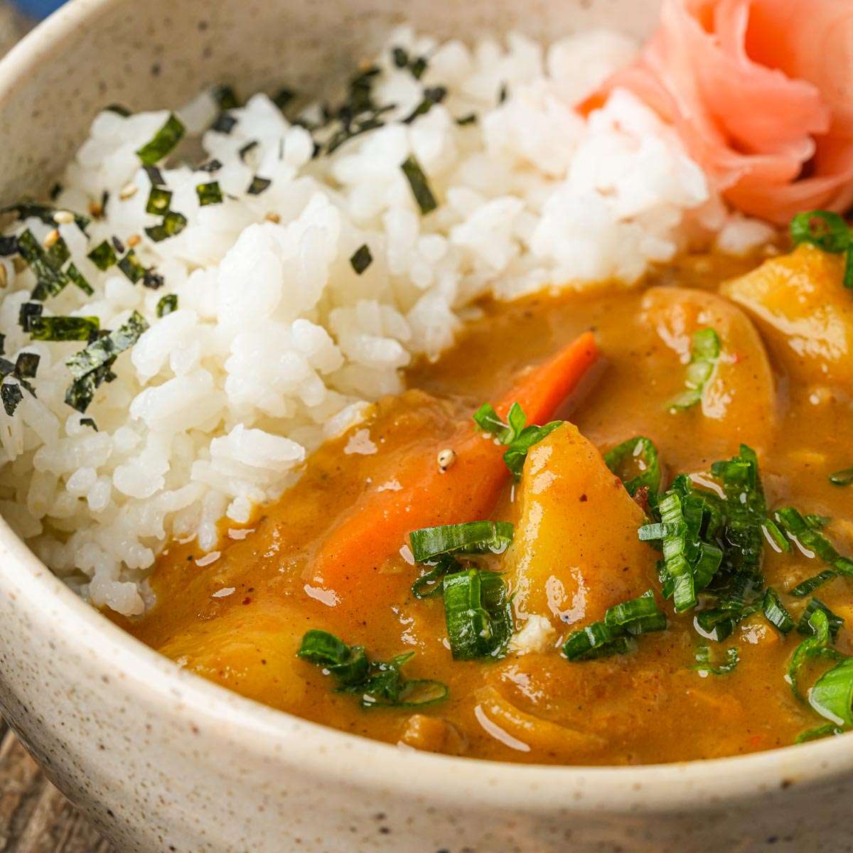 - Serve the curry over cooked short-grain rice. If desired, garnish with sliced scallions and tofu katsu.