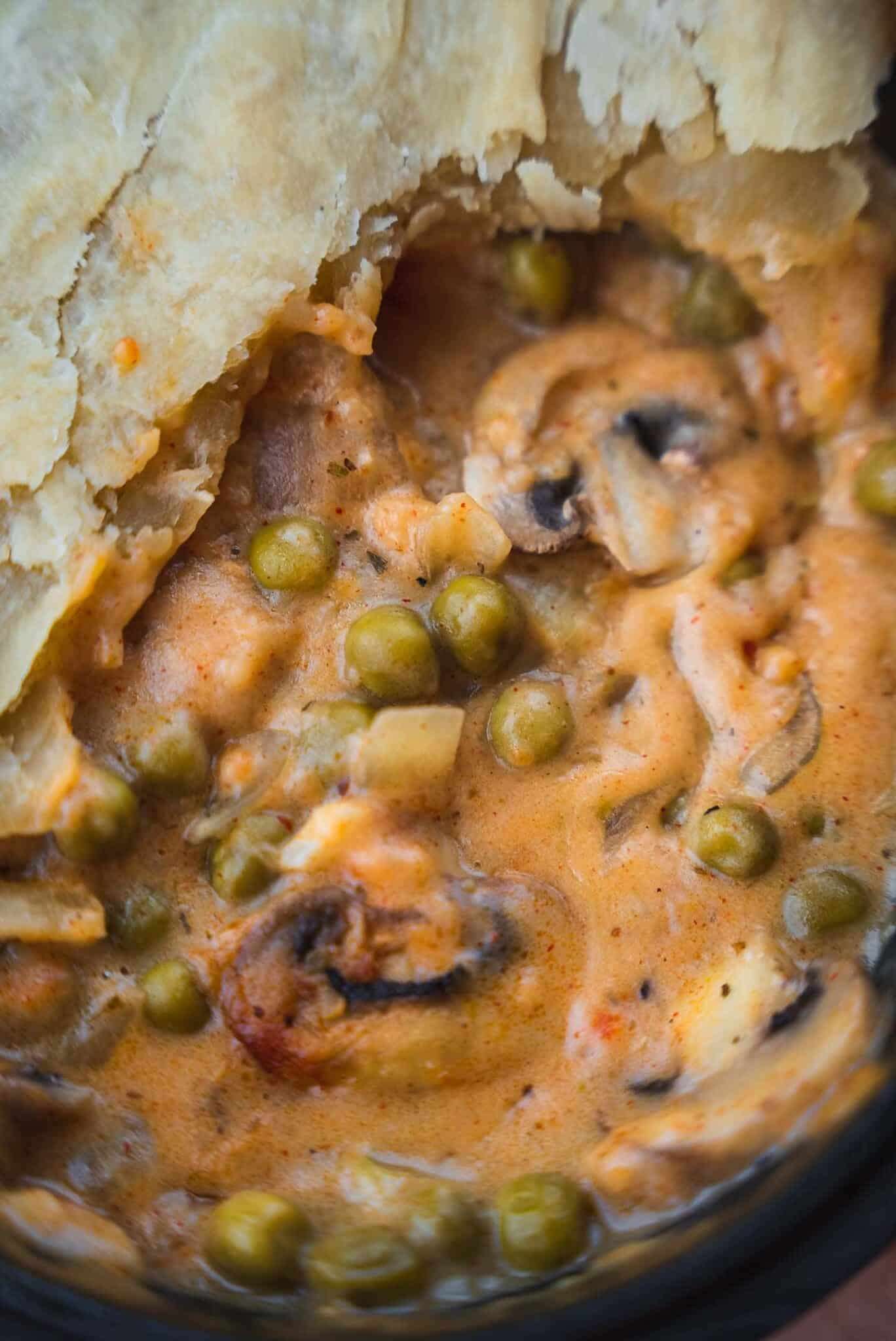 The best vegan mushroom pie with green peas! This flavorful recipe features a hearty mushroom and vegetable filling, and a flaky homemade crust, making a perfect centrepiece for any occasion.