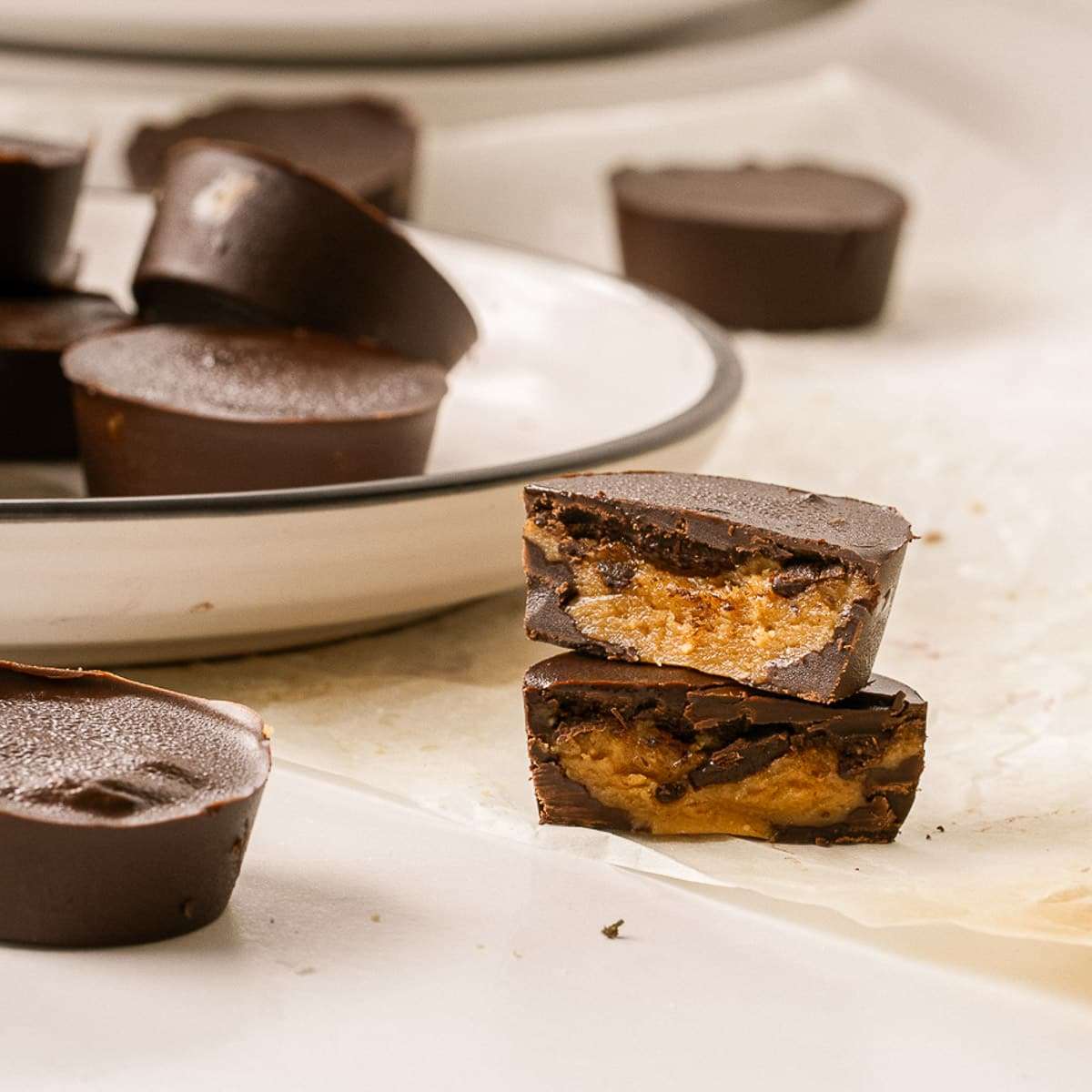 A rich, creamy peanut-butter center is covered in chocolate in this simple, no-bake Vegan Peanut Butter Cups recipe. You only need 6 simple ingredients to make your own delicious, vegan peanut butter cups at home!