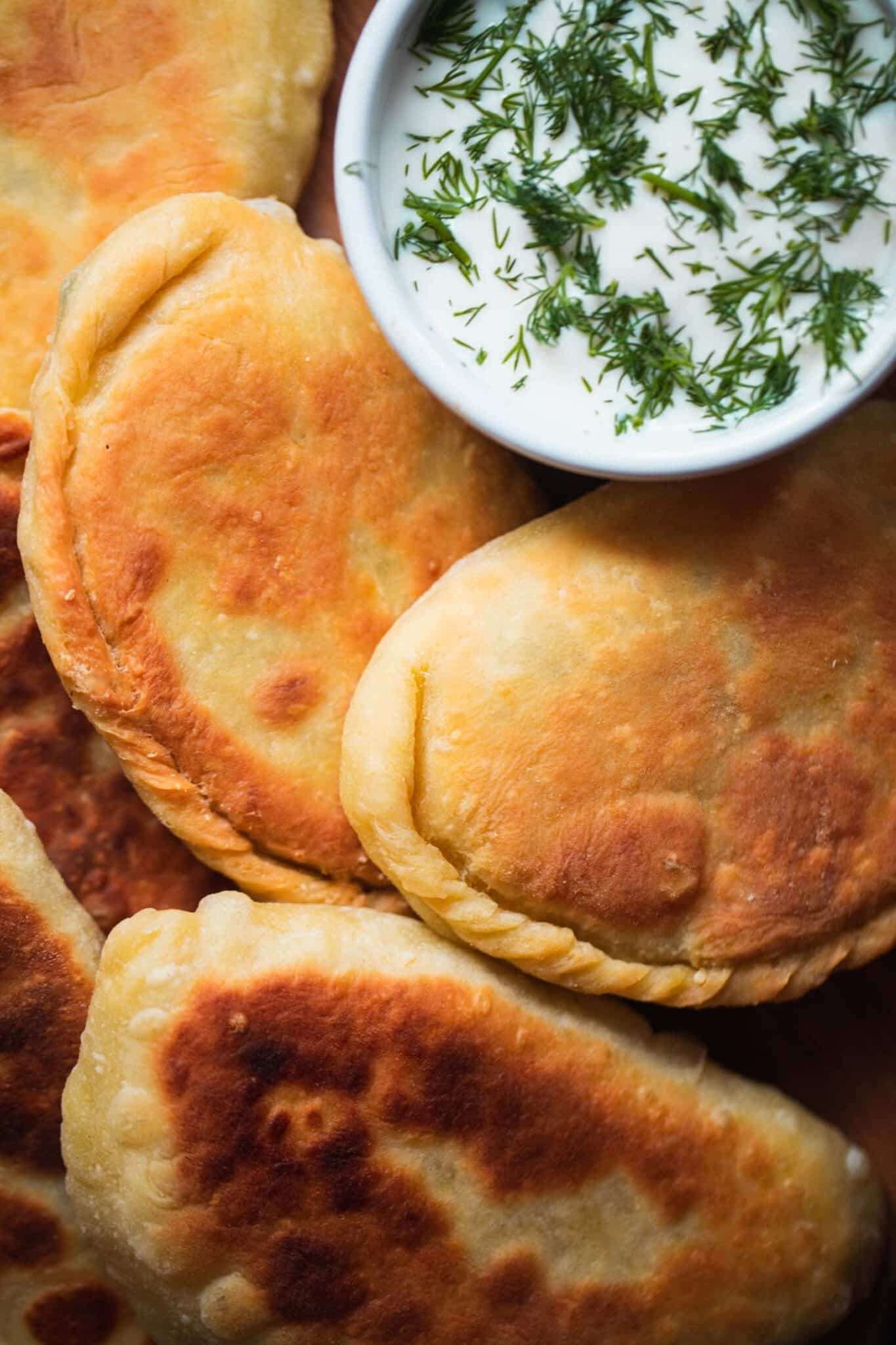 - TO FRY: Heat a thin layer of olive oil in a frying pan. Transfer the piroshki to the frying pan, making sure not to overcrowd. Fry them for around 5-6 minutes on one side, then flip and fry for a further 3-4 minutes, until crispy and golden brown.