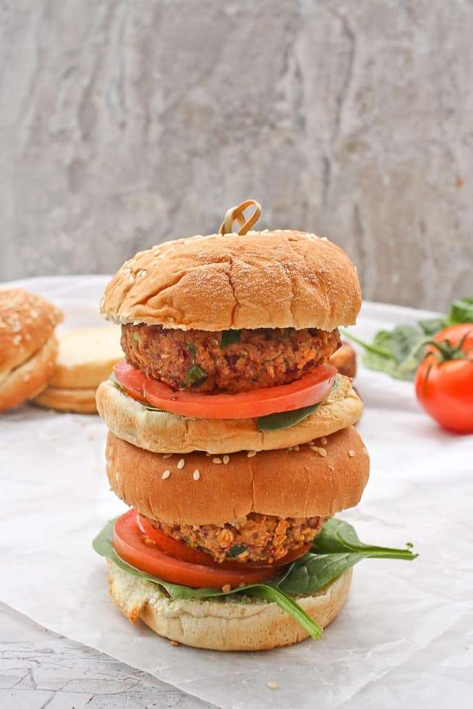 These Vegan Quinoa Burgers are packed with quinoa, beans, and oats for an incredibly quick and delicious take on homemade veggie burgers! Makes approximately 4 large burgers, or 6-8 smaller slider-size mini burgers.