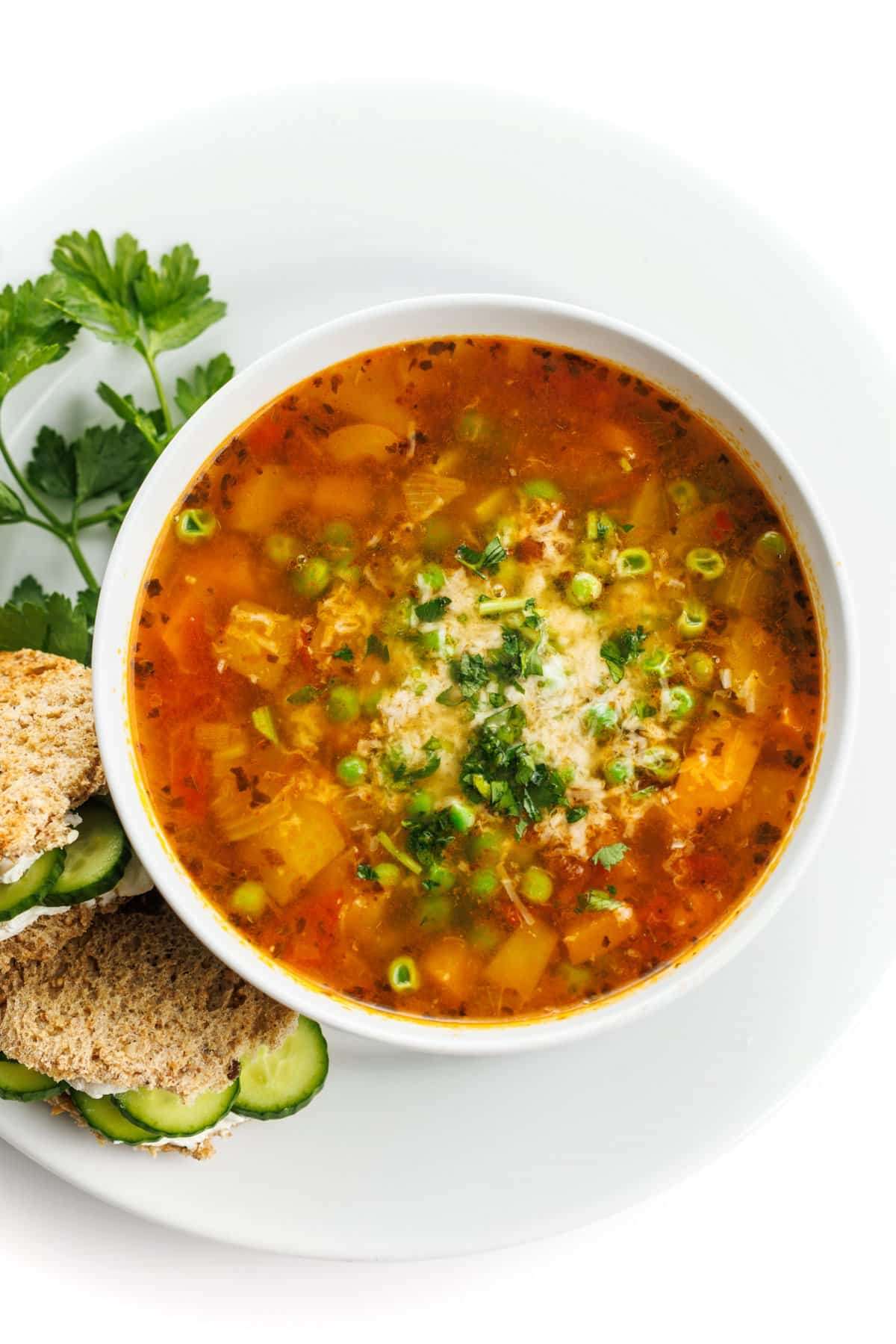 This hearty vegetable soup with pasta is full of nutrients and packed with flavor – great for prepping ahead, freezing and reheating.