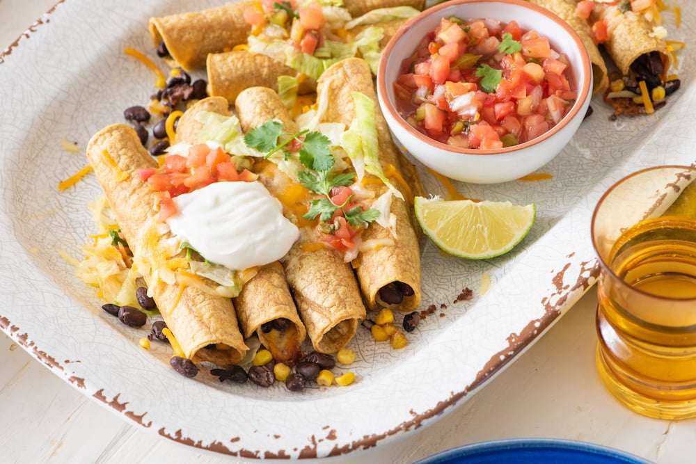 - Place the taquitos seam-side down on a foil-lined cookie sheet, spray the tops lightly with cooking oil and bake for 25 minutes.