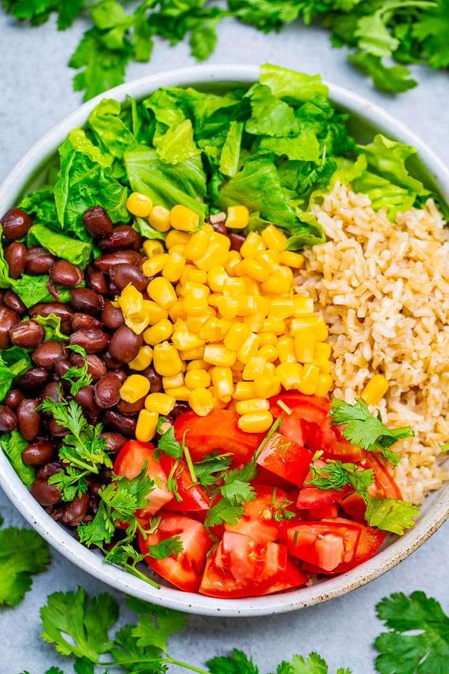 Your favorite burrito ingredients minus the meat and extra carbs to keep things HEALTHIER!! Ready in 10 minutes and keeps you satisfied but not stuffed! Great EASY lunch, dinner, or meal prep recipe!!