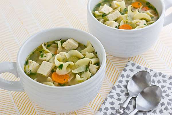 - Add onions, garlic, carrots, celery, thyme and bay leaf. Cook and stir for 3 minutes; add tofu. Cook for an additional 5 minutes or until vegetables are softened, but not browned.