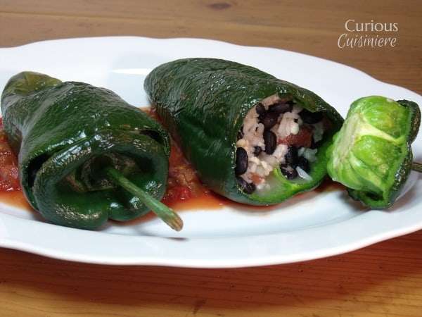 Beans, rice, and creamy cheese are the perfect filling for these Vegetarian Stuffed Poblano Peppers.Yield: 4 stuffed peppers