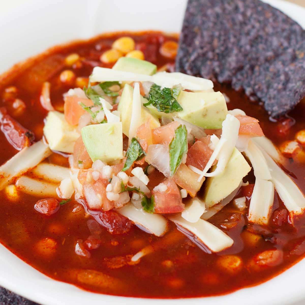 Few things are better than a warm, hearty bowl of this veggie enchilada soup on a cold day! It's healthy, delicious, and meatless!