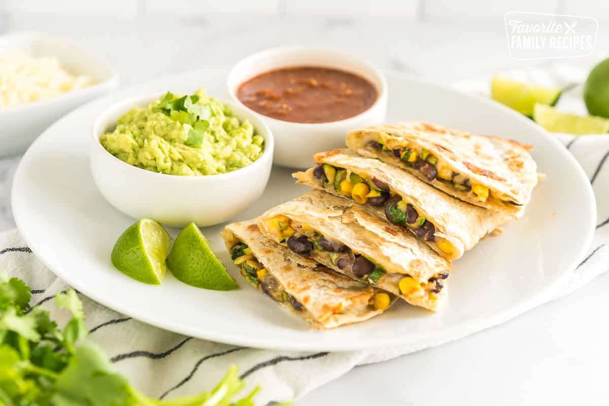 Veggie Quesadillas are chock full of flavor, but low on calories. You can't go wrong with corn, zucchini, black beans, and cheese. Delicious as a meal or a snack!