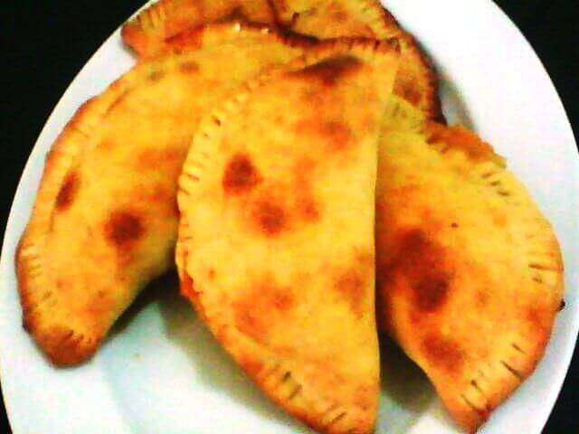 - Fold dough cover filling.Turn edge of the lower dough over edge of the top,pinch edge to seal and prick he top with fork.