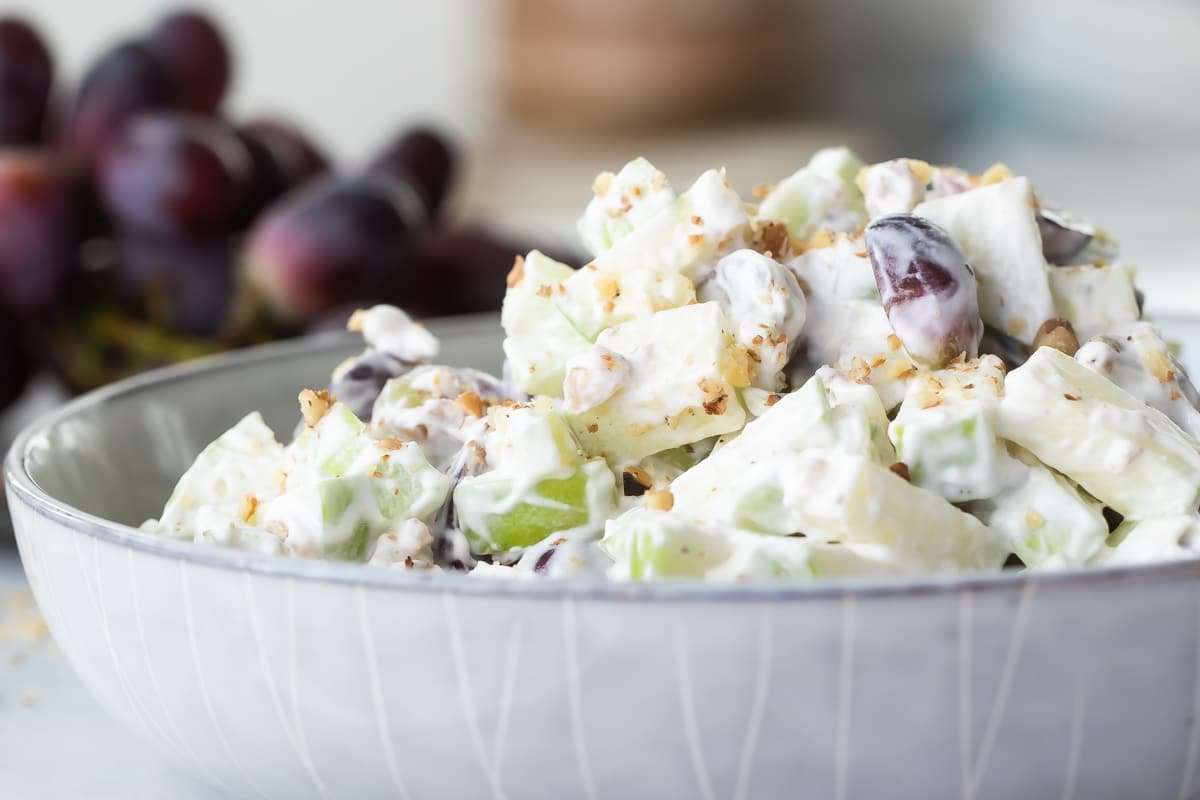 This updated Waldorf Salad recipe has all the classic components (apples, celery, grapes, and walnuts) but a modern mayonnaise dressing that is lightened with whipped cream. It's a tasty blast from the past that makes an excellent party salad.