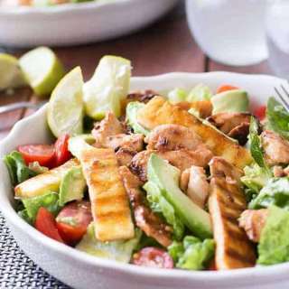 - Slice the haloumi thickly and paint with oil. Cook in a a frypan or grill plate till just coloured. set aside on a plate.