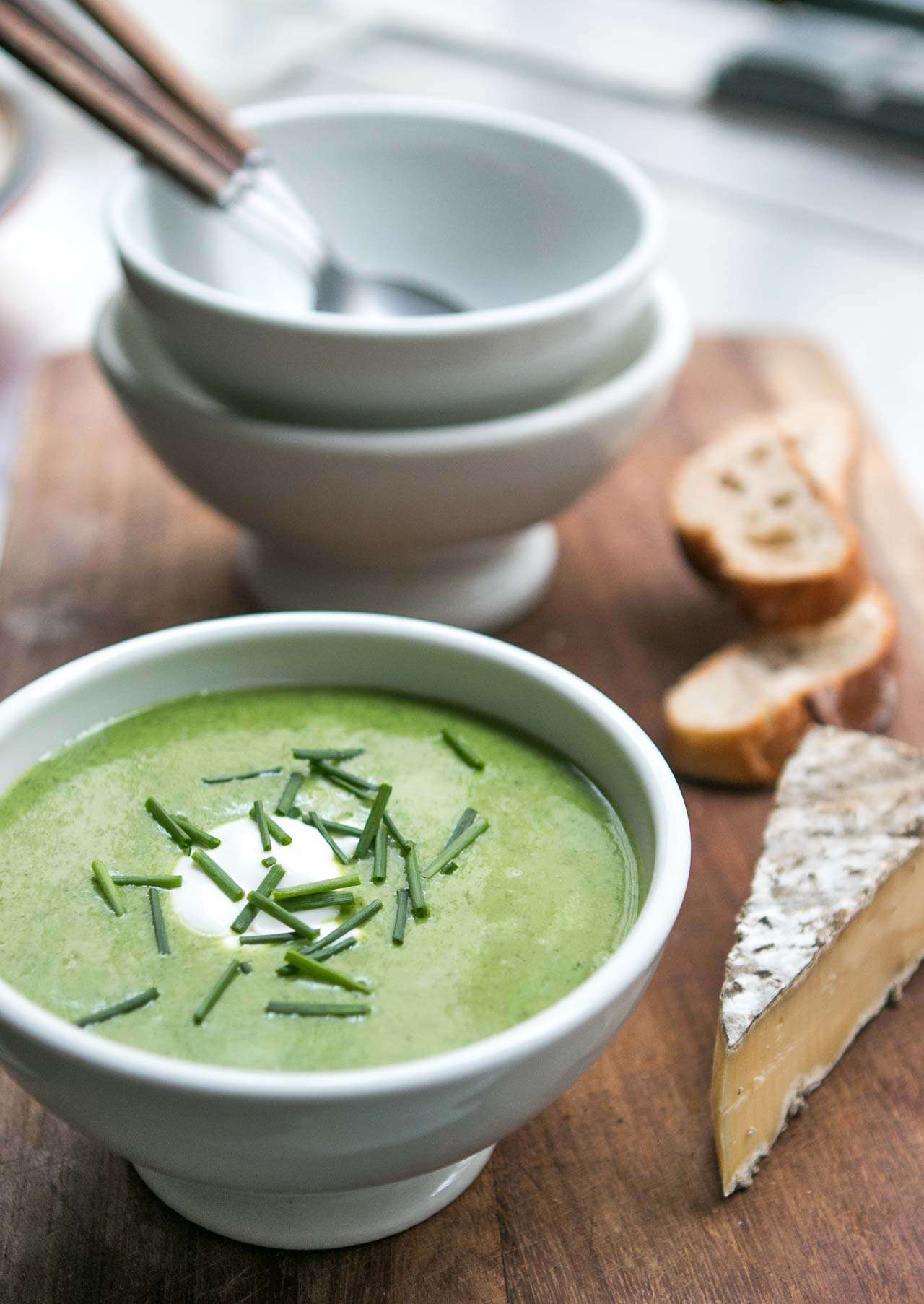Clean the watercress well in a couple of changes of cold water to make sure there’s no grit. You can use all the leaves and tender stems, but any stems that feel especially tough and woody, don’t use. I added peas to give it some extra body and to bolster the color, but you can leave them out if you wish. If you want a creamier soup, blend a few tablespoons of heavy cream or creme fraiche into the soup in step 3.