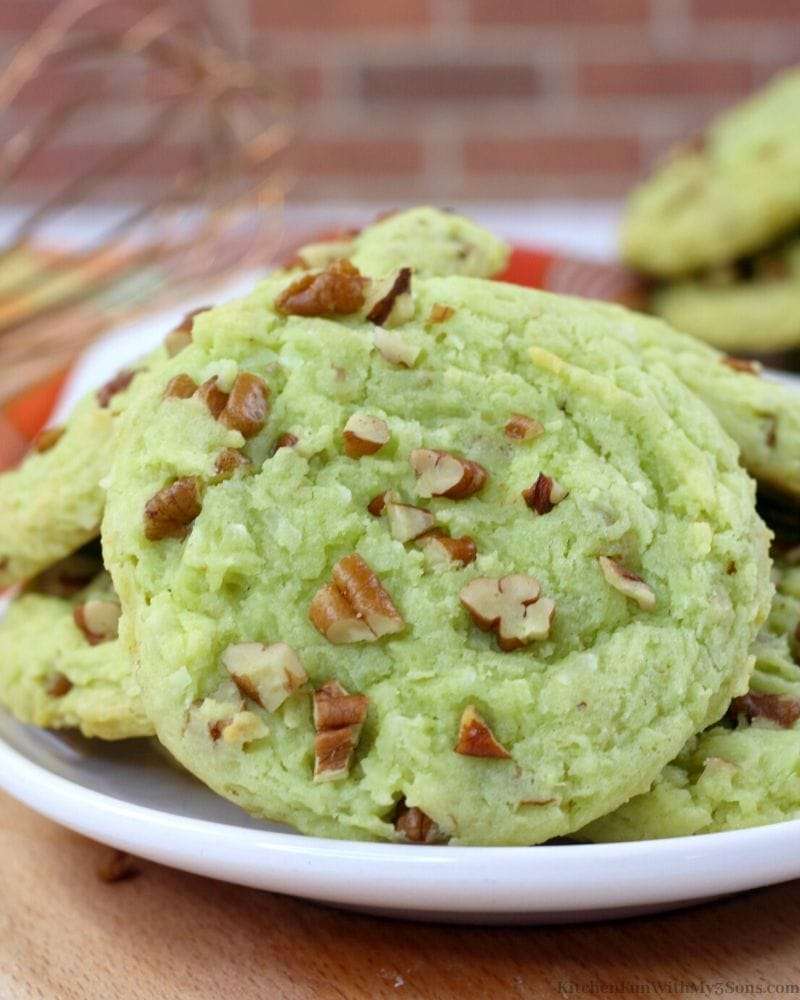 If you love the flavor of Watergate Salad, you are going to love these Watergate Cookies. These are moist chewy cookies that have all the flavors of the traditional Watergate Salad. These cookies are incredibly easy to make and the flavor is fantastic.