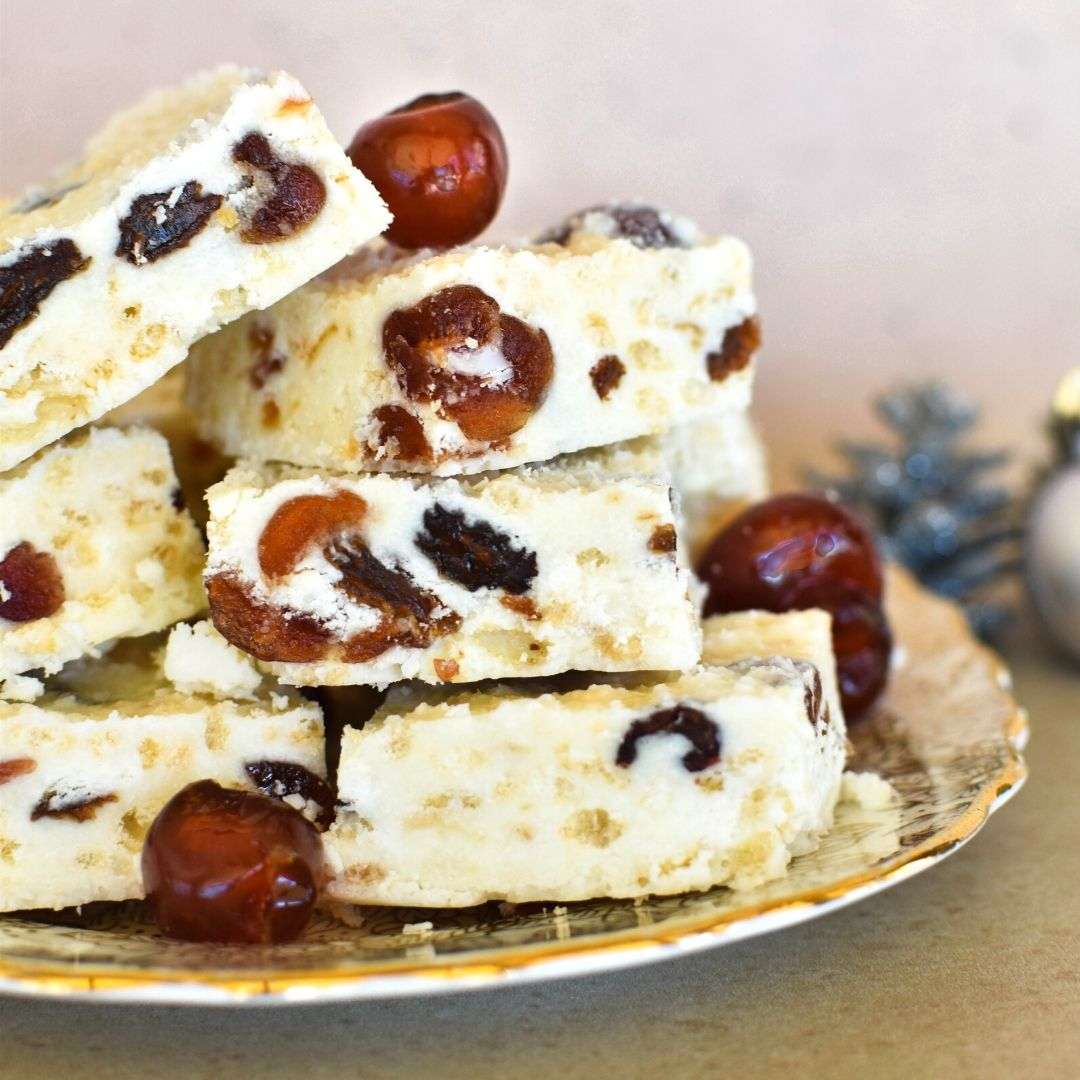 - Add powdered milk, mixed fruit, glace cherries, icing sugar, rice bubbles and ¾ cup of the coconut (retaining remaining ¼ cup) to a mixing bowl and stir to combine. Sprinkle vanilla extract over the mixture.