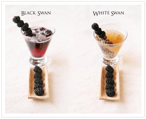 These cocktails were inspired by Natalie Portman’s performance in “The Black Swan” as a relentlessly driven ballet dancer whose obsession with perfection warps her mind. The White Swan, with its fresh orange juice and sparkling champagne, embraces grace and innocence, while the Black Swan captures the darker and more sensual personality with its intoxicating combination of Chambord, a black raspberry liqueur and vodka.