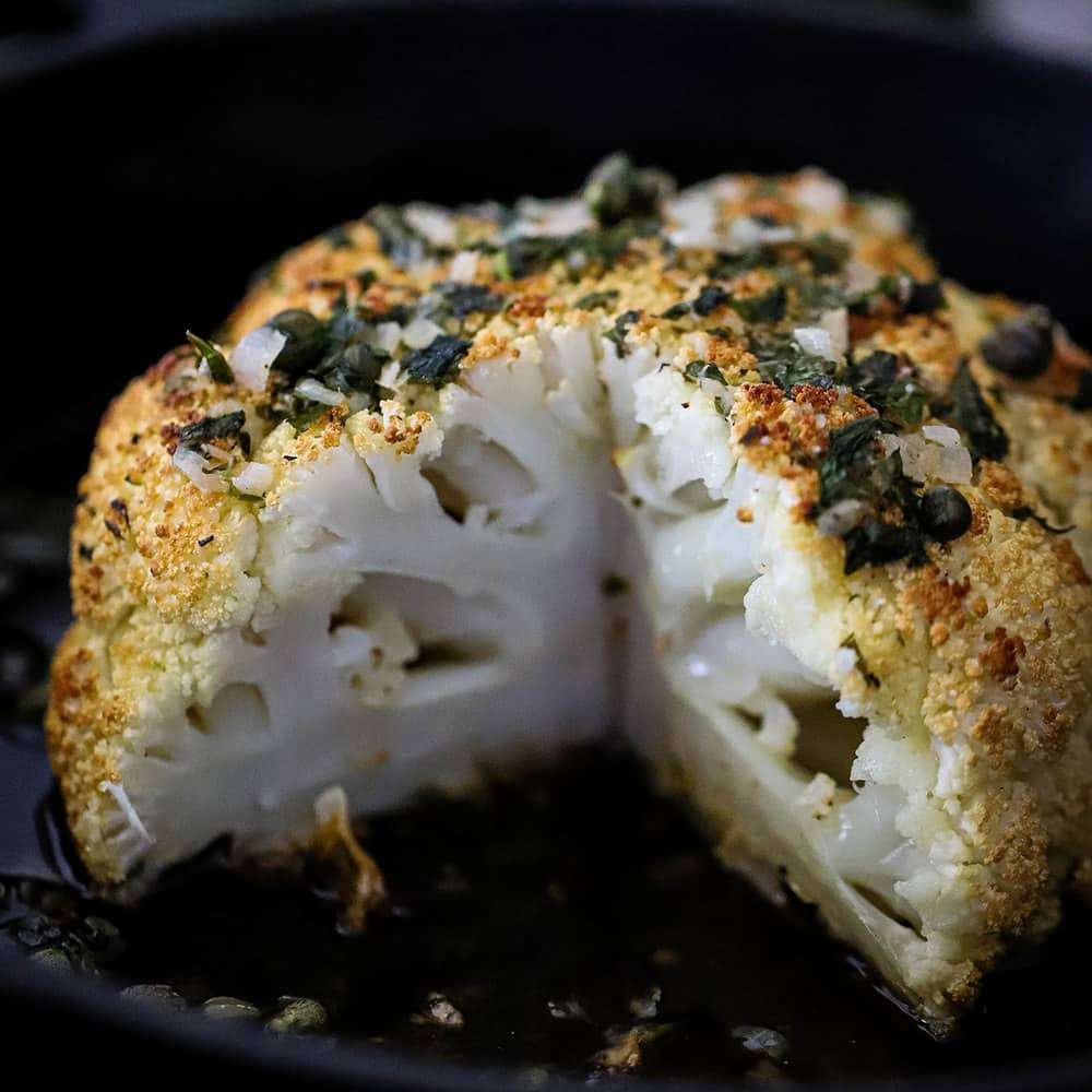 Whole Roasted Cauliflower with Herb Butter Sauce