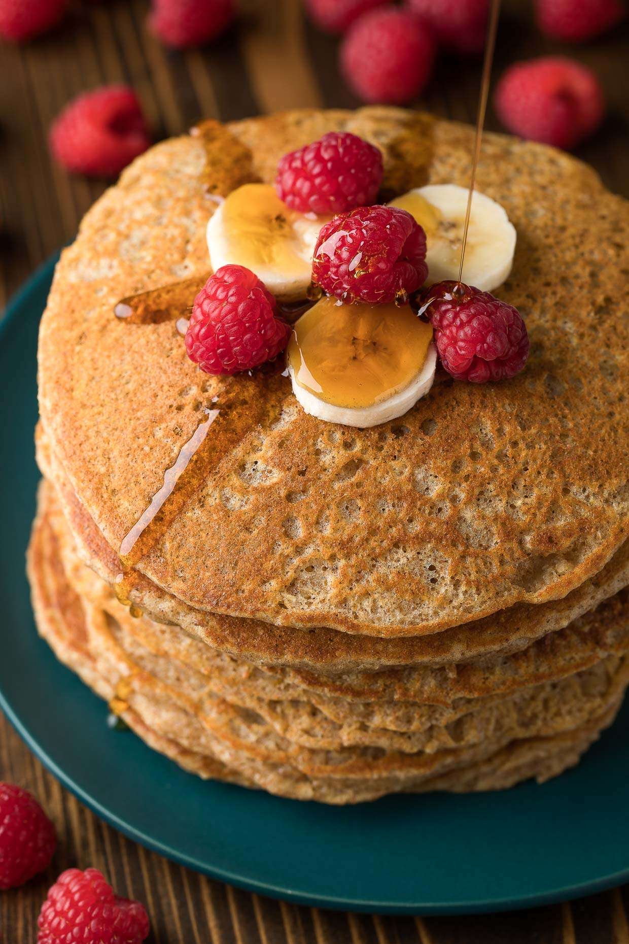- Top with maple syrup and fresh fruit and dig in while they're hot and fluffy!