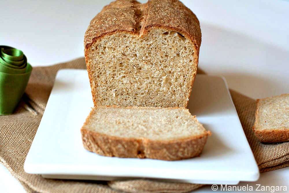 Whole Wheat Sandwich Bread with a lightly crunchy crust and a soft and moist interior.