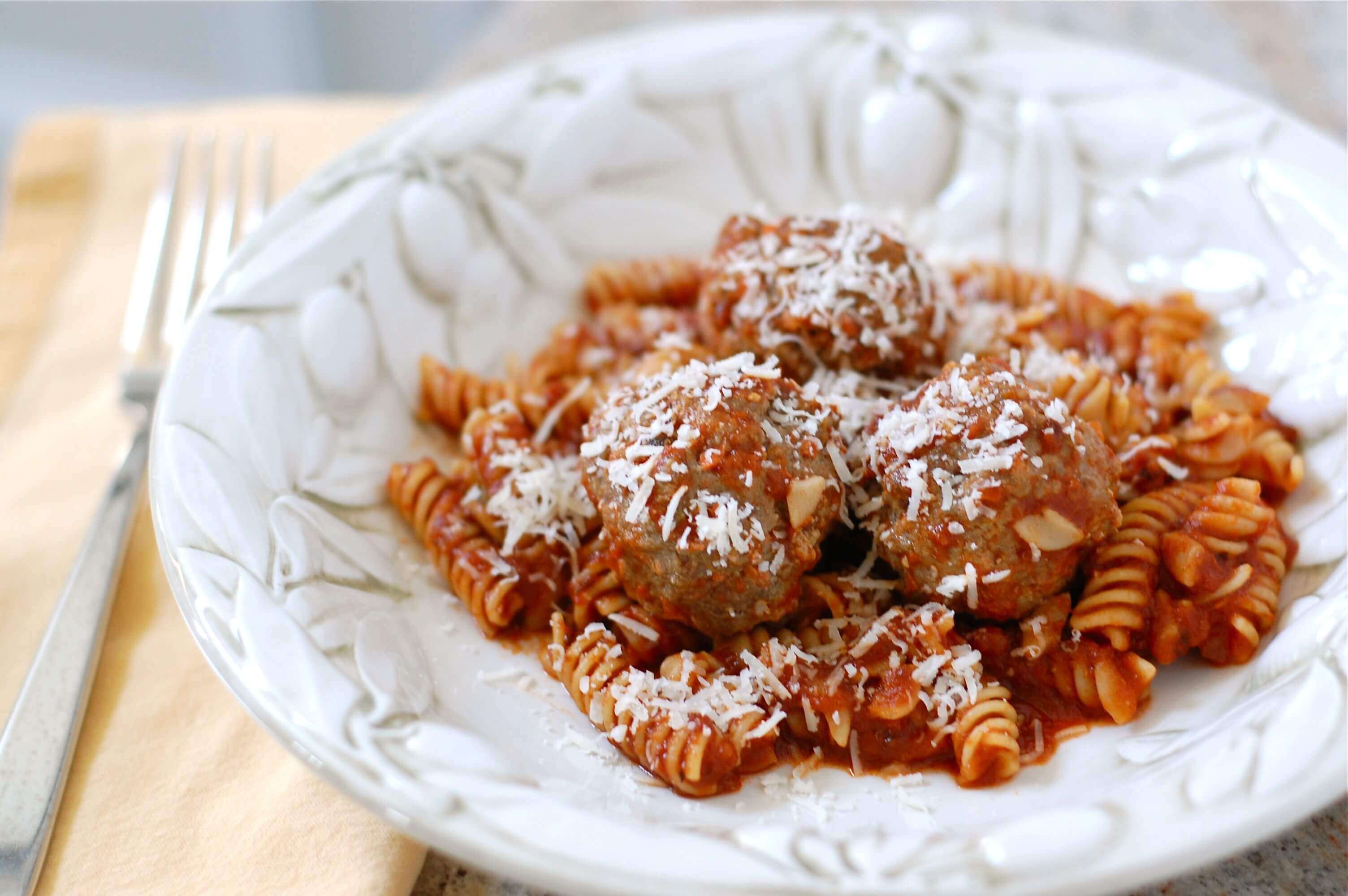 - Serve meatballs on top of cooked noodles and warm pasta sauce. Garnish with extra Parmesan cheese if desired.