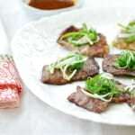 - Repeat until all the beef slices are pan fried. Serve warm with a dipping sauce.