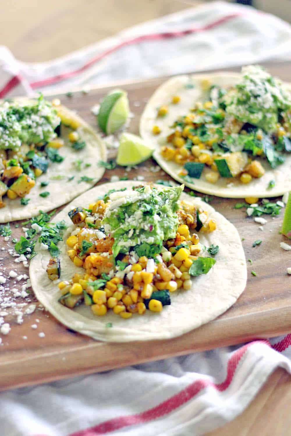 Zucchini and Corn Tacos with Fresh Guacamole