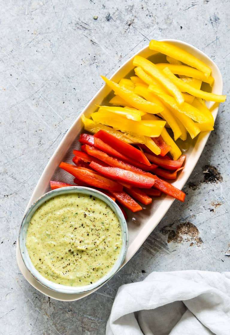 A light refreshing dip made with zucchinis (courgettes), coconut yoghurt and mint.