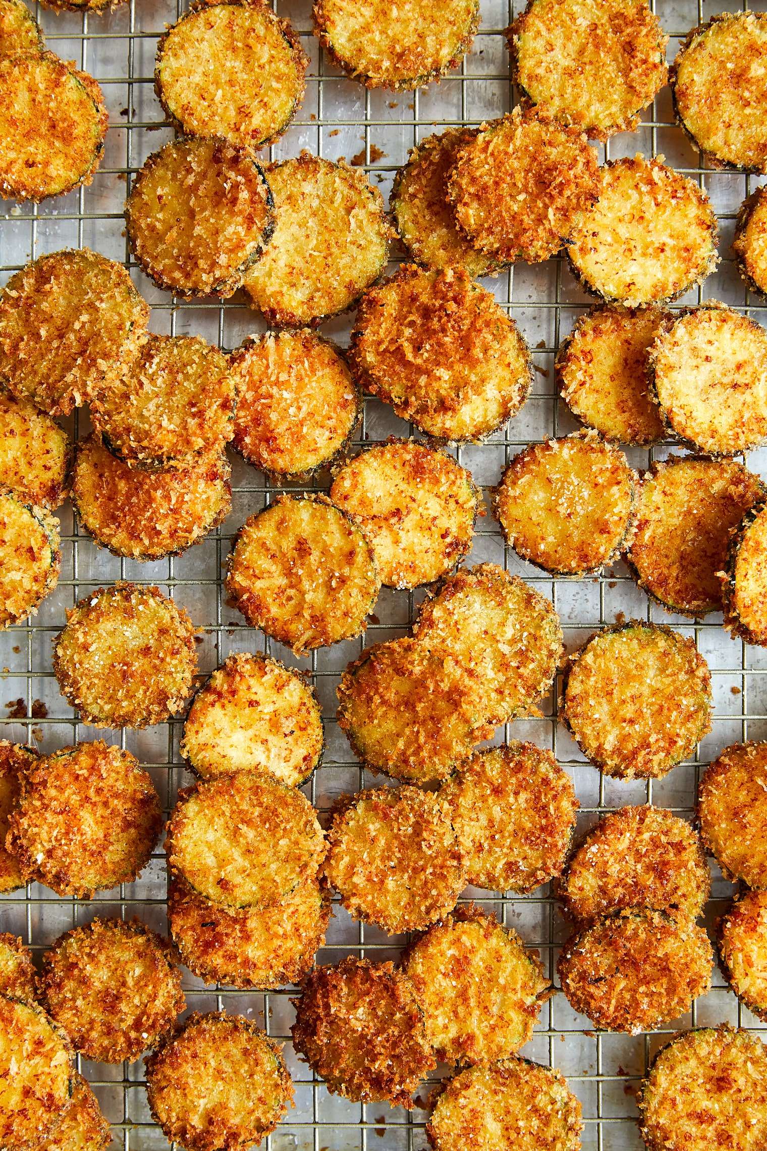 - Add zucchini rounds to the skillet, 5 or 6 at a time, and cook until evenly golden and crispy, about 1 minute on each side. Transfer to a paper towel-lined plate.